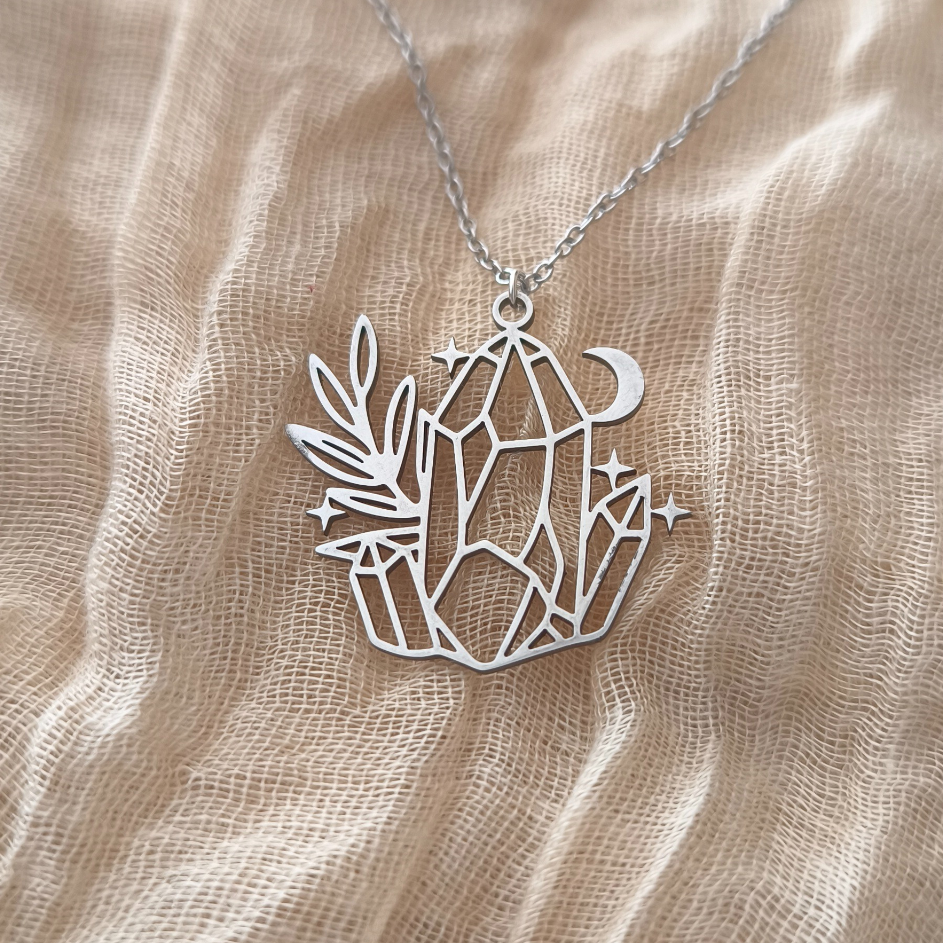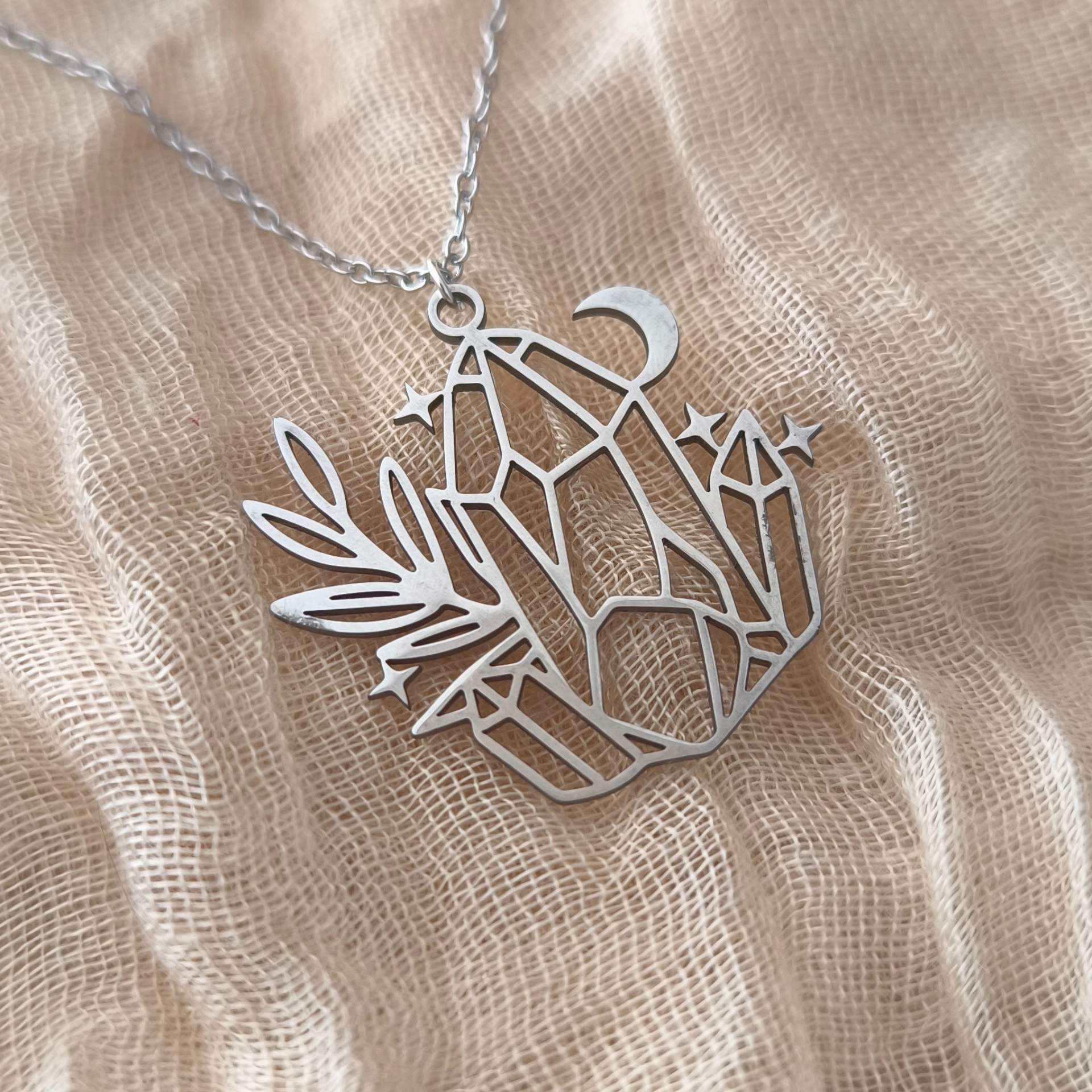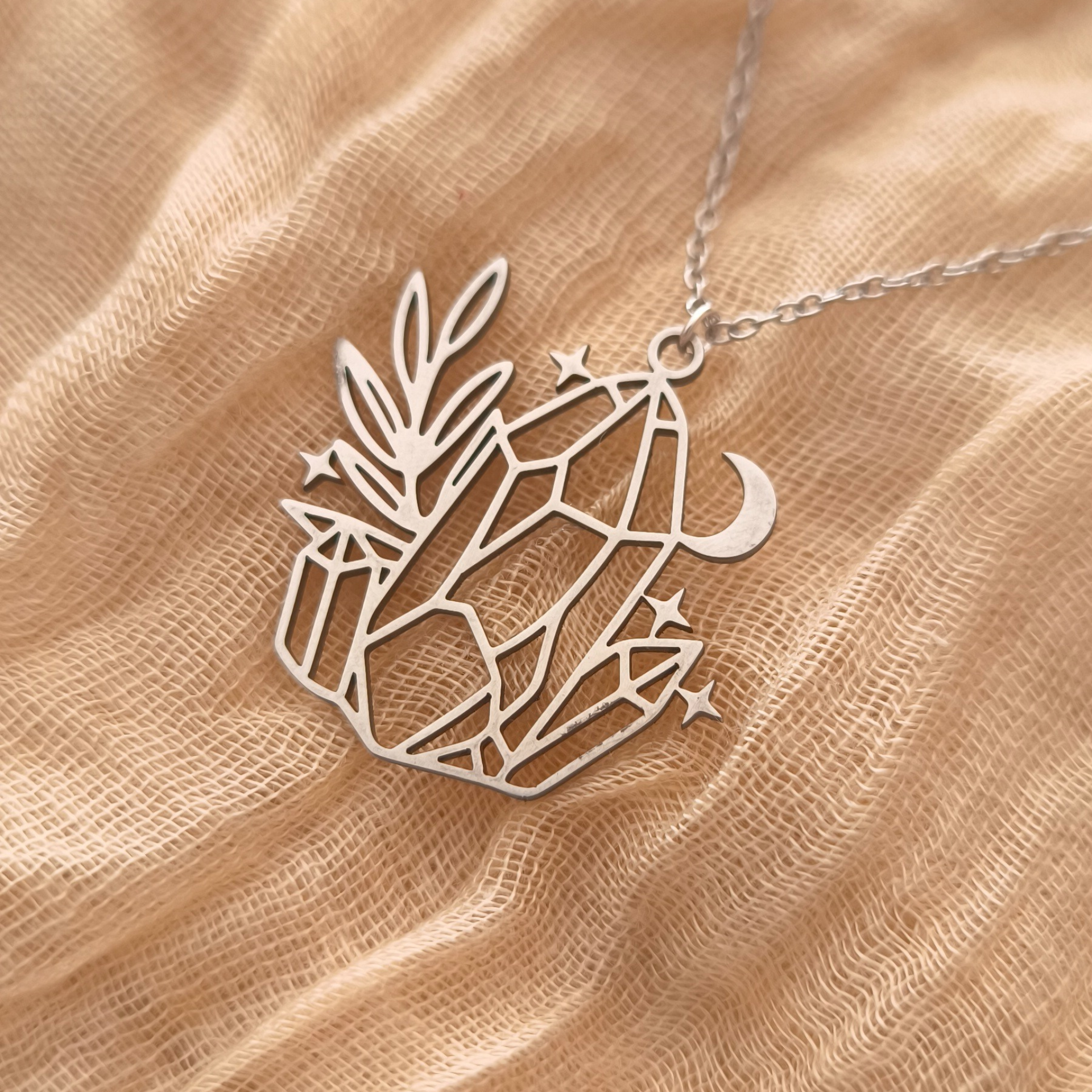 Arcana Tría, une el cielo (estrellas) con la tierra (hojas y cristal), dando fuerza y enraizamiento a Gaia. Llevarlo potencia: