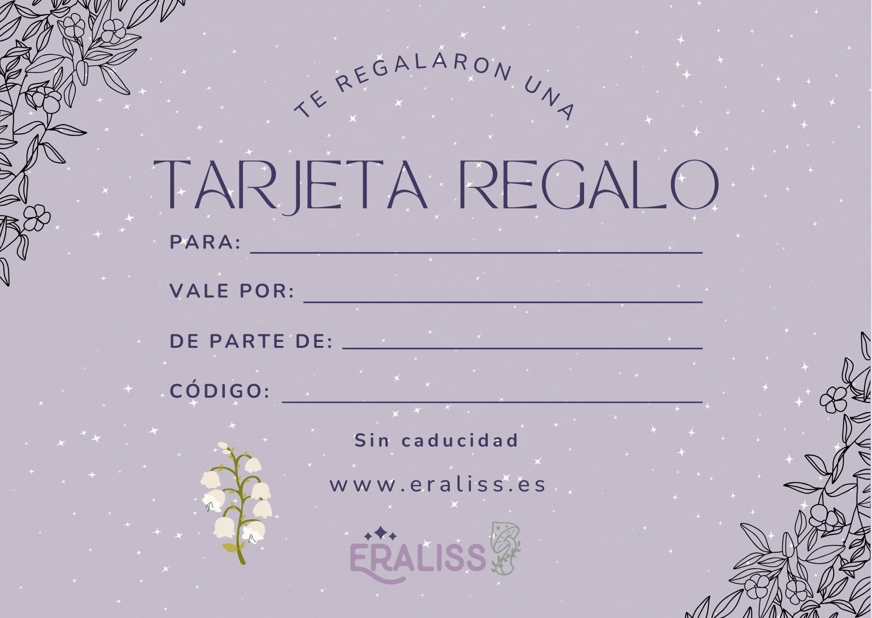 Regala magia, intención y belleza con nuestra Tarjeta regalo digital Eraliss, el detalle perfecto para quienes valoran lo artesanal, lo espiritual y lo hecho con amor. Una forma especial de acertar siempre, permitiendo a la persona elegir exactamente aquello que más resuene con su energía.